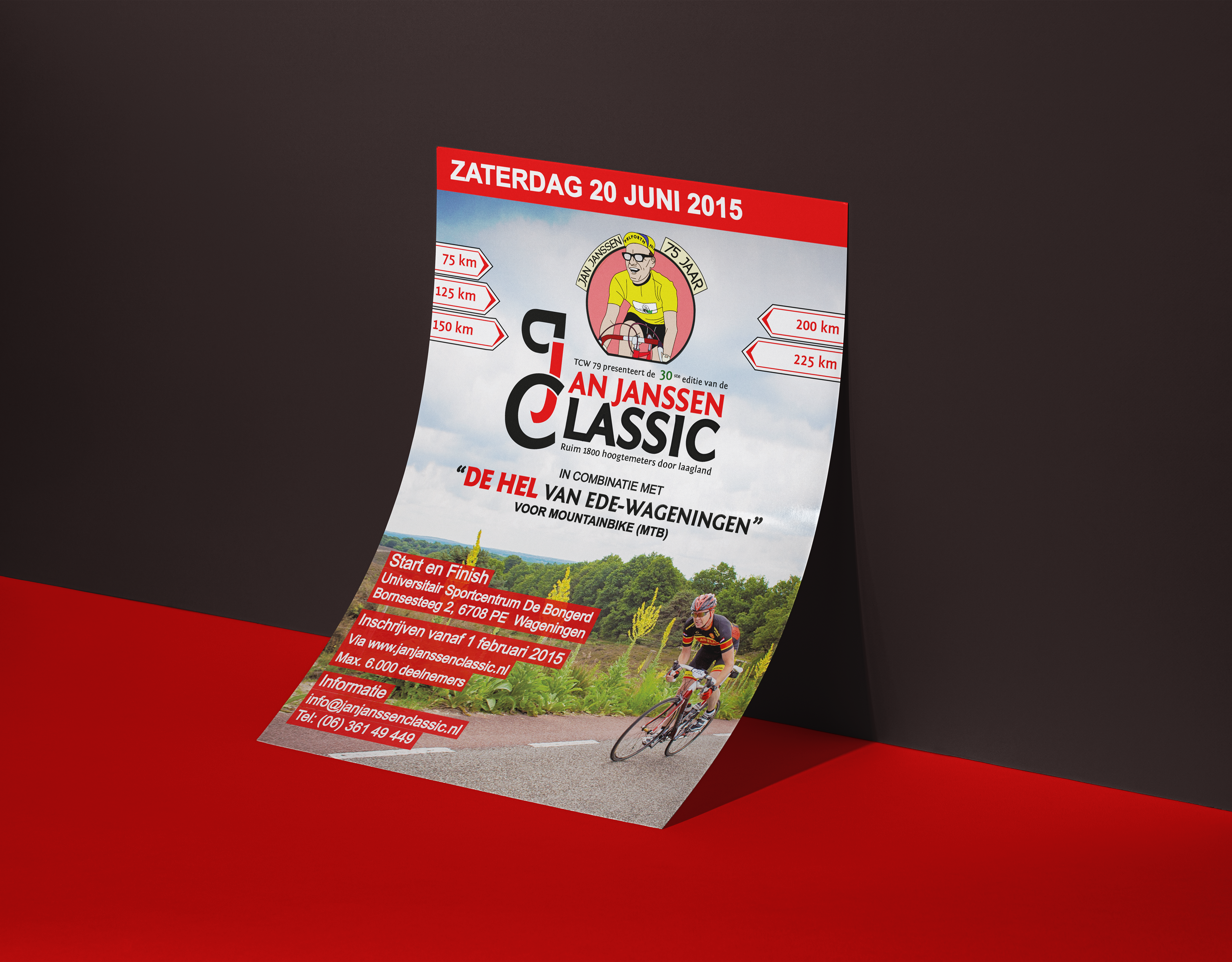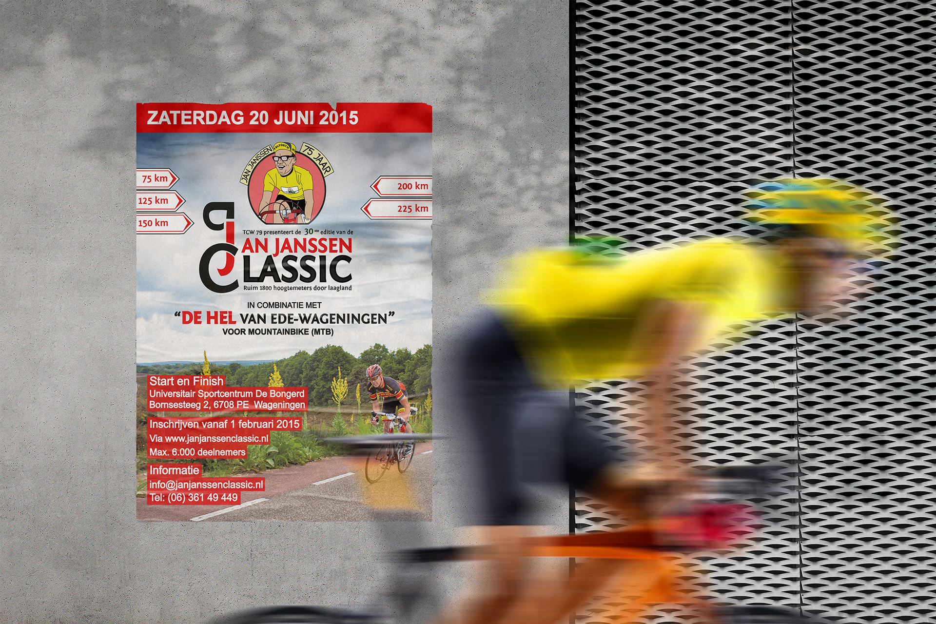 Voor de Wageningse toerclub 'TCW97' heb ik een logo en een flyer/poster ontworpen voor hun jaarlijkse wielertocht, de Jan Janssen Classic. Dit fietsevenement is lange tijd georganiseerd door de vereniging zelf.
